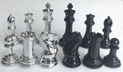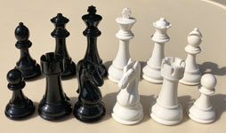 board. The color of the chess pieces is Ivory & Black or Beige &